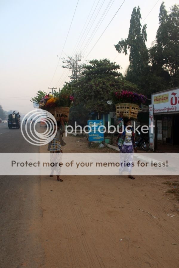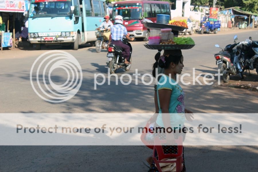 В Мьянме можно увидеть, как носят тарелки и корзины на голове.