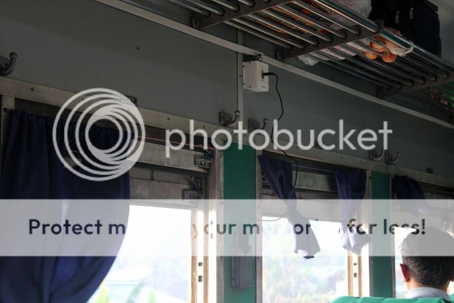 Туристов обслужили по высшему разряду - вместо обычной кассы провели внутрь в помещение с другой стороны окошка и выписали билеты вручную. До Янгона ехать часа два, билет в дешевый класс с обычными деревянными сидениями стоит 600 кьят ($0.5), в класс получше с мягкими креслами - 1000 кьят. Я взял билеты за 600, дабы быть ближе к народу, но проводник нас пересадил в улучшенный вагон.