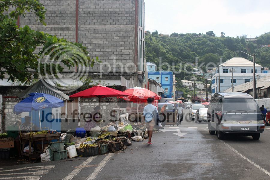 Дороги на Сент-Винсенте по большей части ужасного качества. Даже в столице (этот кадр на центральной улице сделан).