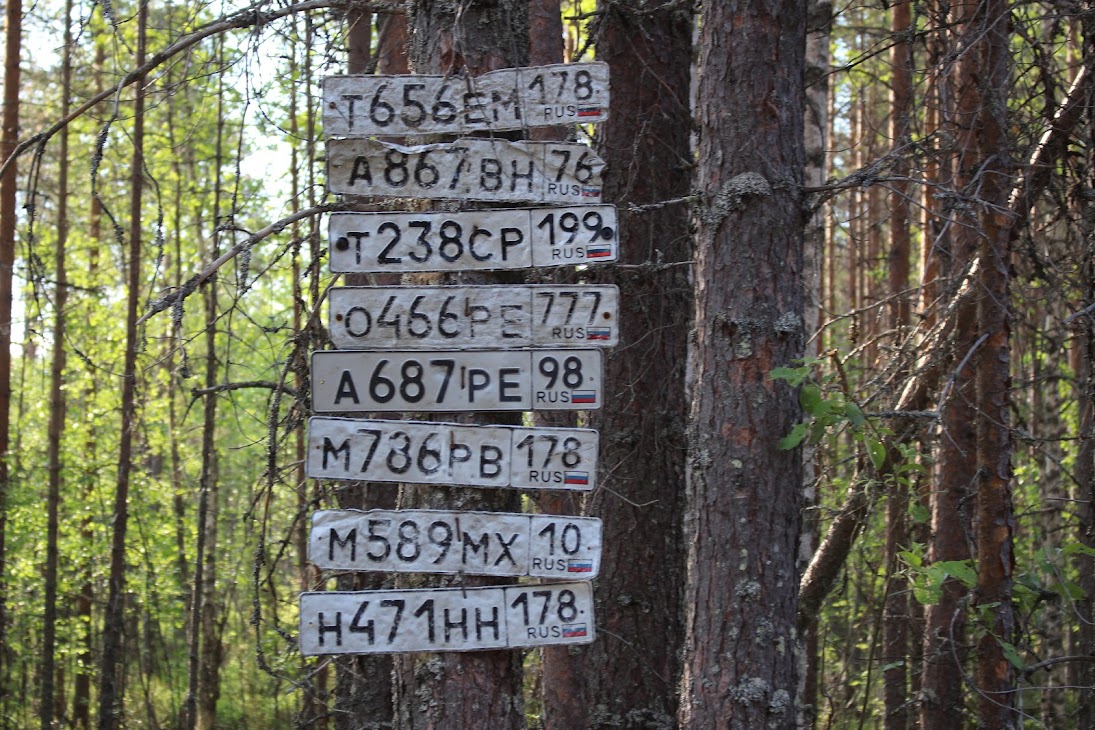 На деревьях в таких местах прибиты потерянные номера машин, для которых лужи оказались слишком глубоки