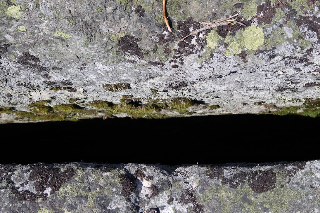 Идеально ровно разрез камня. По мхам видно, что камень треснул уже очень давно